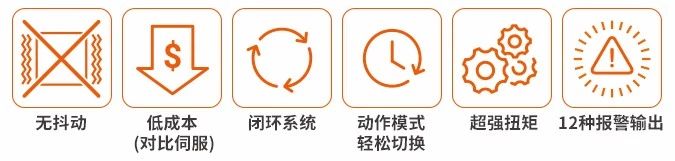 ●  相比伺服电机,响应速度快,连续驱动效果更佳