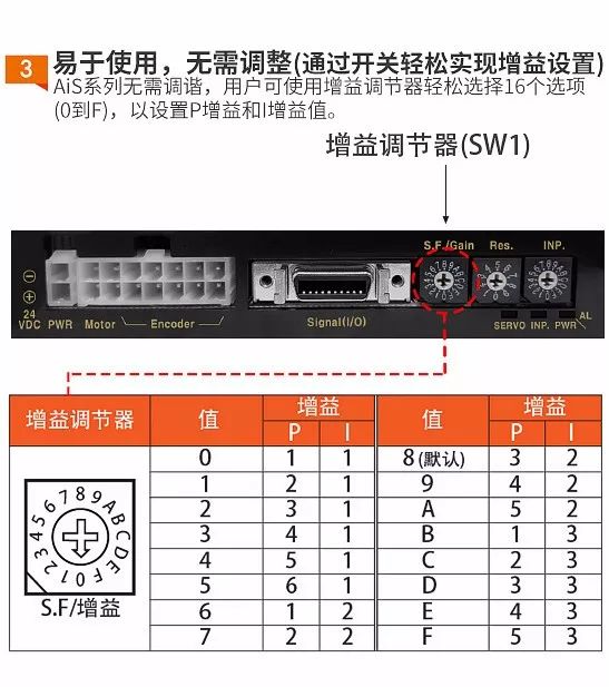 AiS系列闭环步进电机系统,通过集成编码器的即时反馈,实现精准的位置控制。编码器根据输入脉冲,反馈当前位置的信息。10,000P/R的高分辨率使得位置控制精确到0.036°以下。本系列相比于其他品牌同类型产品,具有高扭矩和低发热量的特点,最大化工作效率并增强了安全性。