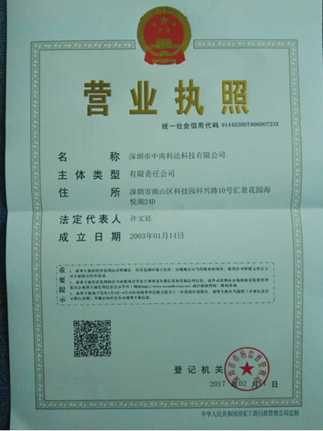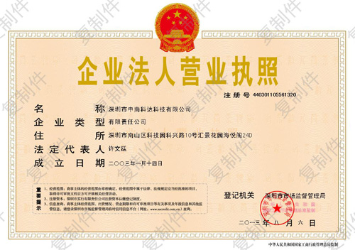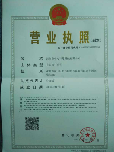 深圳市中南科达科技有限公司组织机构代码证
