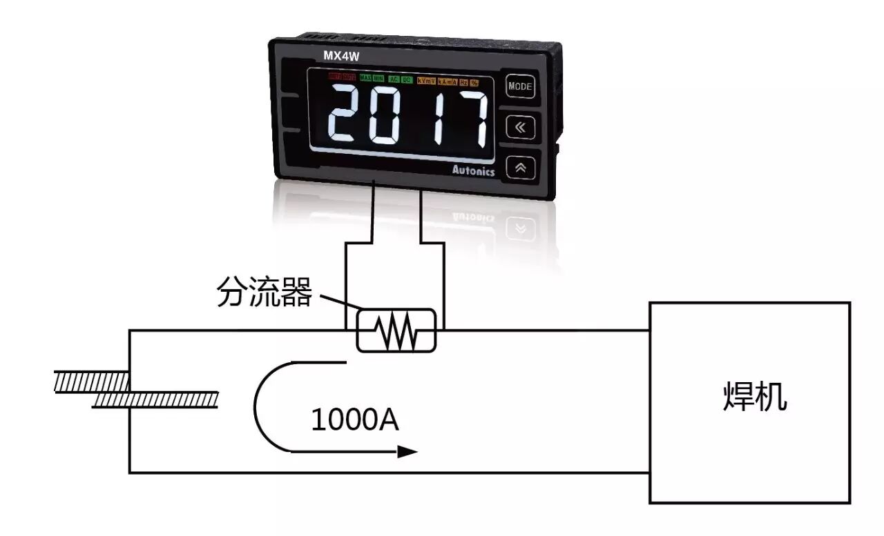 使用分流器并通过数字面板表对工件焊接中变动的电流值进行测量监测。