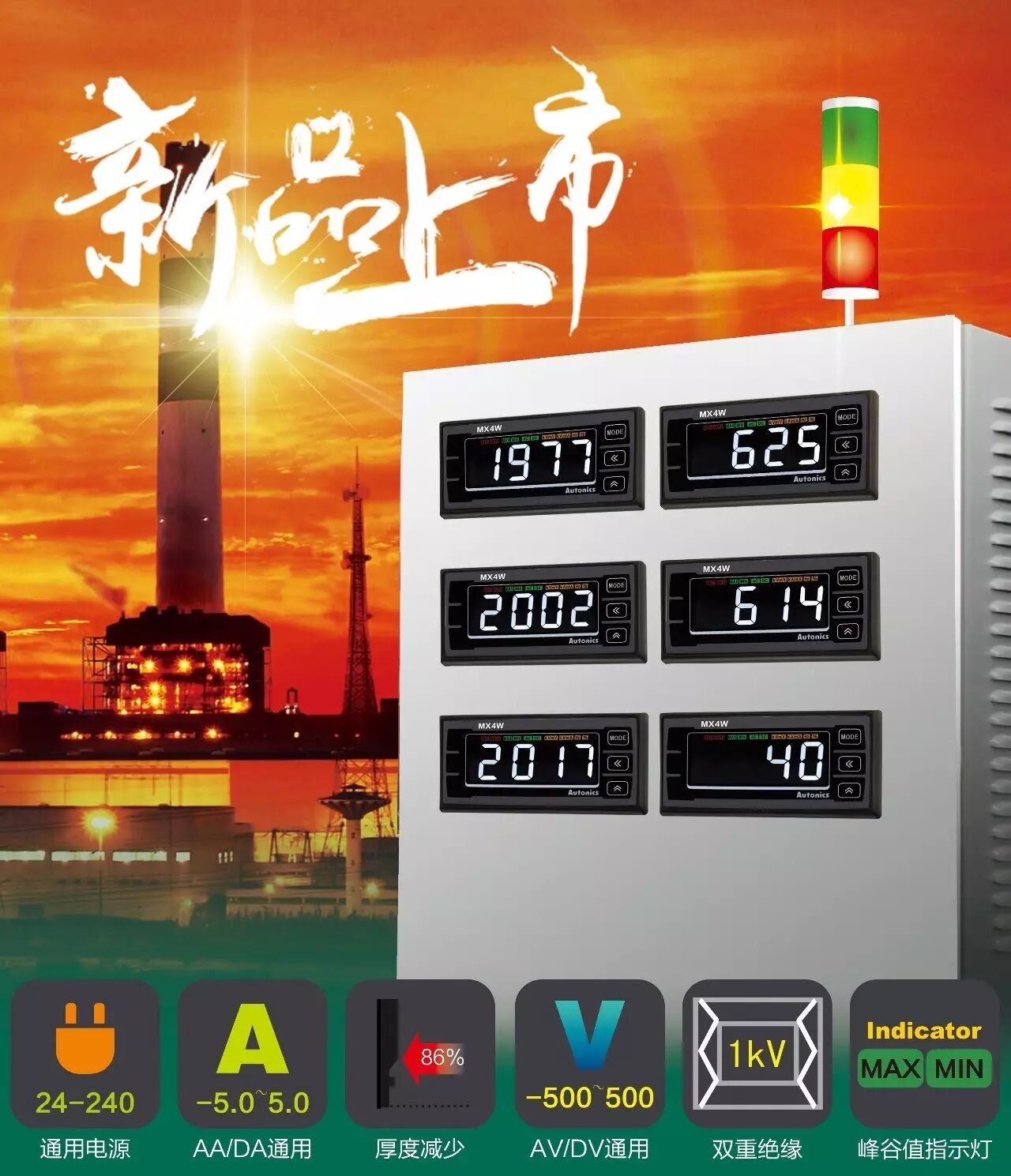 由1个机型涵盖交直流电压或交直流电流信号输入