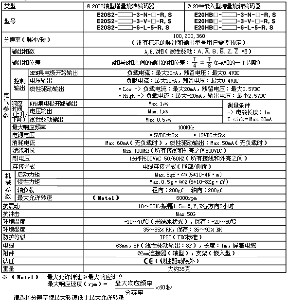 * 分辨率(脉冲/转):100,200,320,360(未标注的类型可根据用户需要订做)