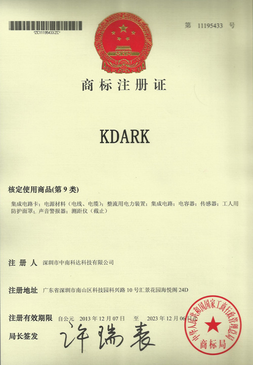 深圳市中南科达商标注册证
